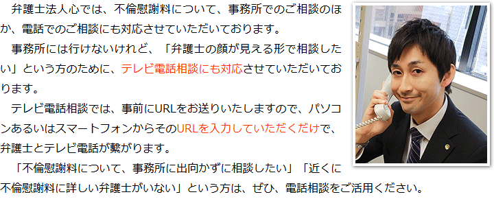 トップその他電話相談・テレビ電話相談について 階層構造▼ その他(目次) 電話相談・テレビ電話相談について その他(目次)その他トップ共通バナー元※消さない心グループニュース電話相談・テレビ電話相談について代表メッセージ慰謝料請求の流れお客様相談室グループ概要関連リンクプライバシーポリシーサイトマップ 受付時間 平日 9時~21時、土日祝 9時~18時夜間・土日祝の相談も対応します(要予約) 所在地 〒171-0022 東京都豊島区南池袋2-26-4南池袋平成ビル6F (東京弁護士会所属) 0120-41-2403 お問合せ・アクセス・地図